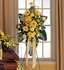 Eloquently express your sympathy with this stunning floral arrangement of yellow alstroemeria, carnations, chrysanthemums and gerberas
