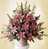 Soft pink and lavender blooms are designed in an abundant display
