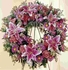 Stargazer lilies are used to remind how special she was in this soft pink wreath. Appropriate to send to the funeral home. Arrangement is delivered with an easel for