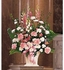 This pink and white arrangement, with its chrysanthemums, larkspur and snapdragons, is perfect to display your heartfelt sentiments