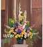 This lovely fan-shaped arrangement, with its soft traditional shapes, displays just the kind of loving tribute you want to send