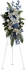 Tranquil blue and white flowers reminiscent of a soft ocean breeze offer comfort. The standing spray presented on an easel includes fragrant white lilies and tropical greenery