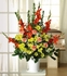 Created with stunning red gladiolus, bicolor carnations, yellow alstroemeria and more, this memorable arrangement of floral beauty is usually displayed at the funeral home