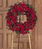 This simple, yet stylish wreath shows the depth of your love and support. One wreath on an easel arrives with red carnations and roses, along with decorative natural foliages. Approximately 19" D