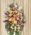 This arrangement of fresh flowers is delivered directly to the funeral home and is displayed on a stand