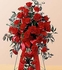 Red carnations and red roses are elegantly arranged and accented with a ribbon in this beautiful spray. Arrangement is delivered on an easel and is appropriate to send to a funeral home